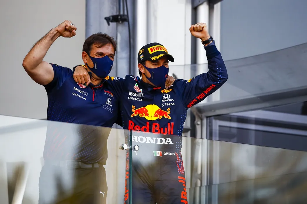 Podium, Sergio Perez (mex), Red Bull Racing Honda RB16B, portrait
