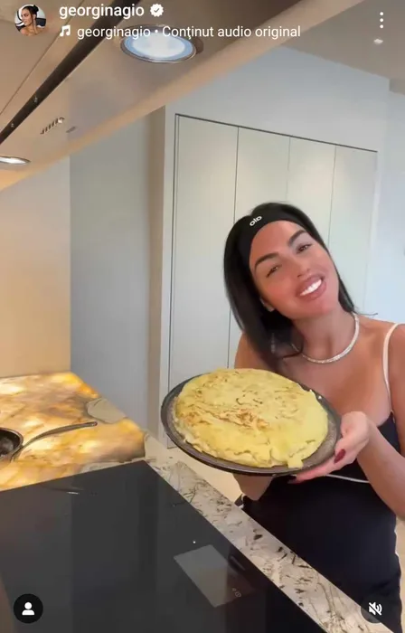Îmbrăcată cu o fustiță foarte scurtă şi cu ochelari de soare, Georgina Rodriguez a gătit şi a strâns 71.000.000 de vizualizări. „Aşa se face omleta spaniolă”