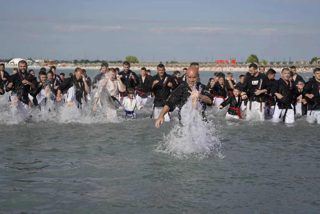 Îmbrăcați în Kimono-uri, 500 de sportivi de la Kempo, alături de președintele federației, Amatto Zaharia, au făcut un antrenament inedit la 7.00 dimineața în Marea Neagră. Au fost atracția turiștilor de pe plaja din Venus!