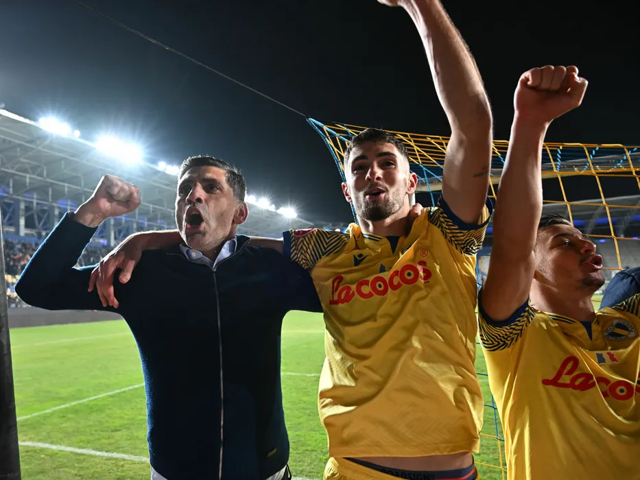 Bucurie a fotbaliștilor ploieșteni Albin Berisha si Valentin Constantin Țicu alături de Florin Cristian Parvu dupa meciul de fotbal dintre Petrolul Ploiesti si Politehnica Iasi, contând pentru Superliga Superbet, desfășurat pe Stadionul Ilie Oana din Ploiesti, vineri 16 februarie 2024. © FOTO: Răzvan PĂSĂRICĂ/SPORT PICTURES
