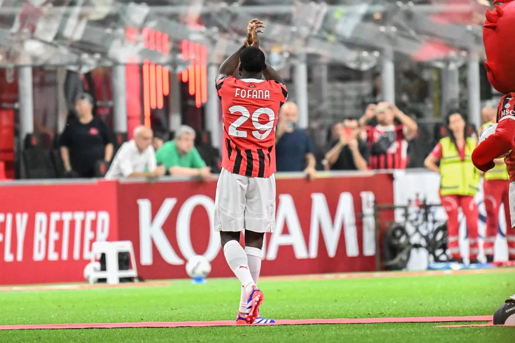 Fofana Ac Milan presented to the public of San Siro during AC Milan vs Torino FC, Italian soccer Serie A match in Milan, Italy, August 17 2024 Copyright: xGianlucaxRicci/IPAxSportx/xipa-ax/xx IPA_48895657 IPA_Agency_IPA48895657,Image: 899557960, License: Rights-managed, Restrictions: PUBLICATIONxNOTxINxITA, Model Release: no