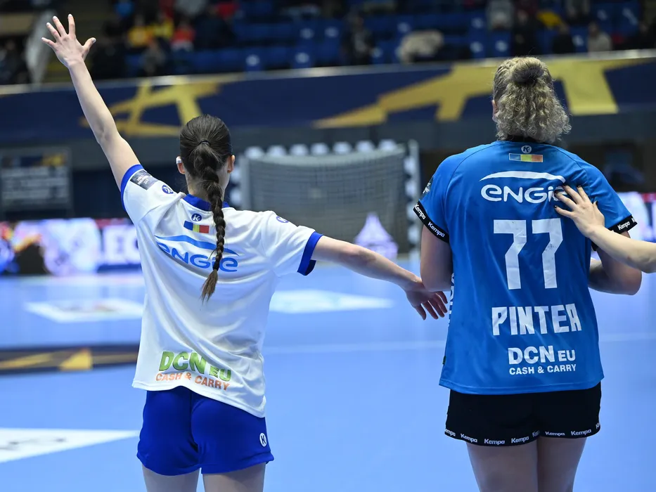 Nada Kadovic, imbracata in tricoul bucurestencelor, alaturi de Crina Elena Pintea in meciul de handbal feminin dintre CSM Bucuresti si WHC Buducnost Bemax, contand pentru Liga Campionilor, desfasurat in Sala Polivalenta-Ioan Kunst Ghermanescu din Bucuresti, duminica 7 ianuarie 2024. © FOTO:Razvan Pasarica/SPORT PICTURES