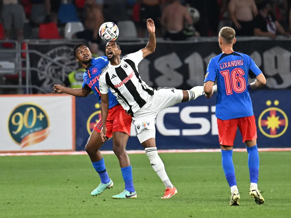 Siyabonga Ngezana si Adel Bettaieb in meciul dintre FCSB si Universitatea Cluj, contand pentru Superliga Superbet, desfasurat pe Stadionul Steaua-Ghencea din Bucuresti, sambata 13 iulie 2024. © FOTO:Razvan Pasarica/SPORT PICTURES