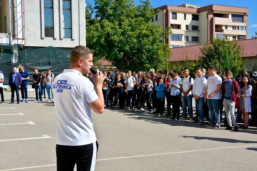 În uniforma lui Ștefan Bănică! Ani de liceu 2018: Flavius Stoican și jucătorii Politehnicii le-au oferit elevilor Colegiului „Gheorghe Asachi” din Iași bilete pentru meciul cu Dinamo