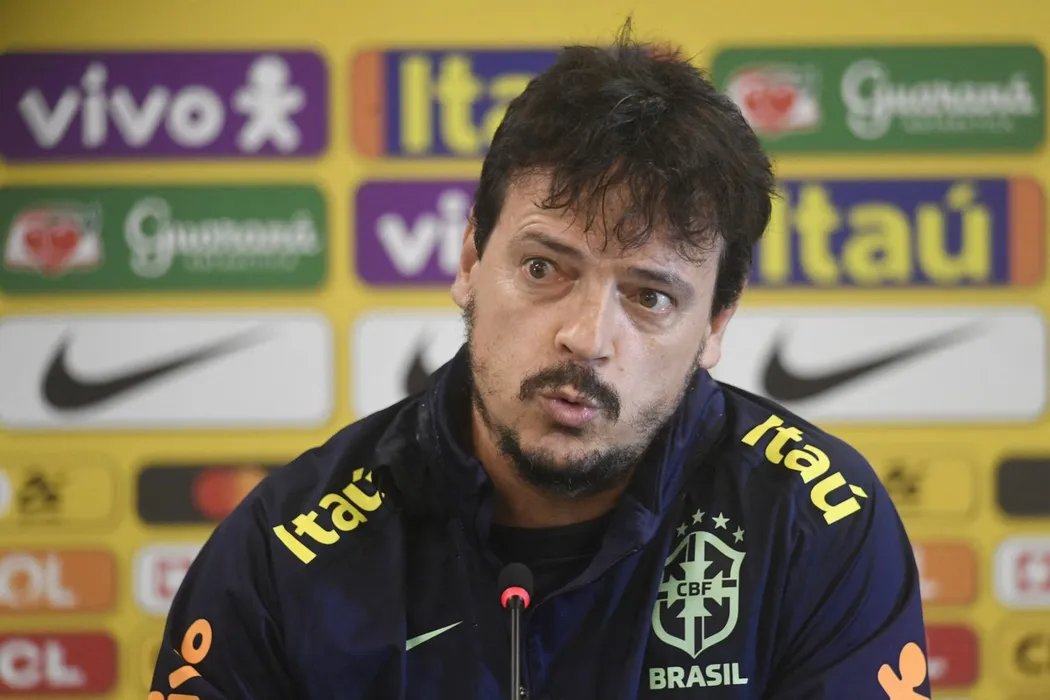 Brazil's coach Fernando Diniz speaks during a press conference in Teresopolis, Rio de Janeiro, Brazil, on November 20, 2023, ahead of the FIFA World Cup 2026 qualifier football match against Argentina on November 21.,Image: 823313748, License: Rights-managed, Restrictions: , Model Release: no