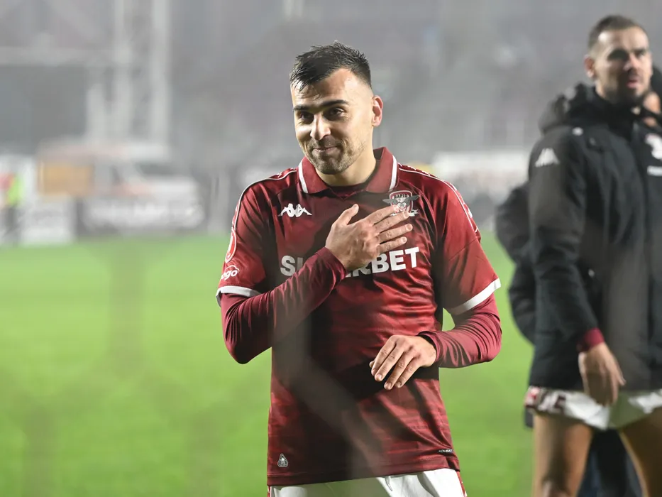 Luka Gojkovic saluta galeria dupa meciul de fotbal dintre Rapid Bucuresti si FK Csikszereda Miercurea Ciuc, din cadrul Superligii Superbet, desfasurat pe Superbet Arena-Giulesti din Bucuresti, vineri 28 noiembrie 2025. © FOTO:Razvan Pasarica/SPORT PICTURES