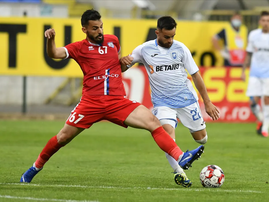Enriko Papa si Cristian Barbut in meciul de fotbal dintre FC Botosani si Universitatea Craiova, contand pentru play-off-ul Ligii 1 Casa Pariurilor, disputat fara spectatori pe Stadionul Municipal din Botosani, duminica 19 iulie 2020. © FOTO:Razvan Pasarica/SPORT PICTURES