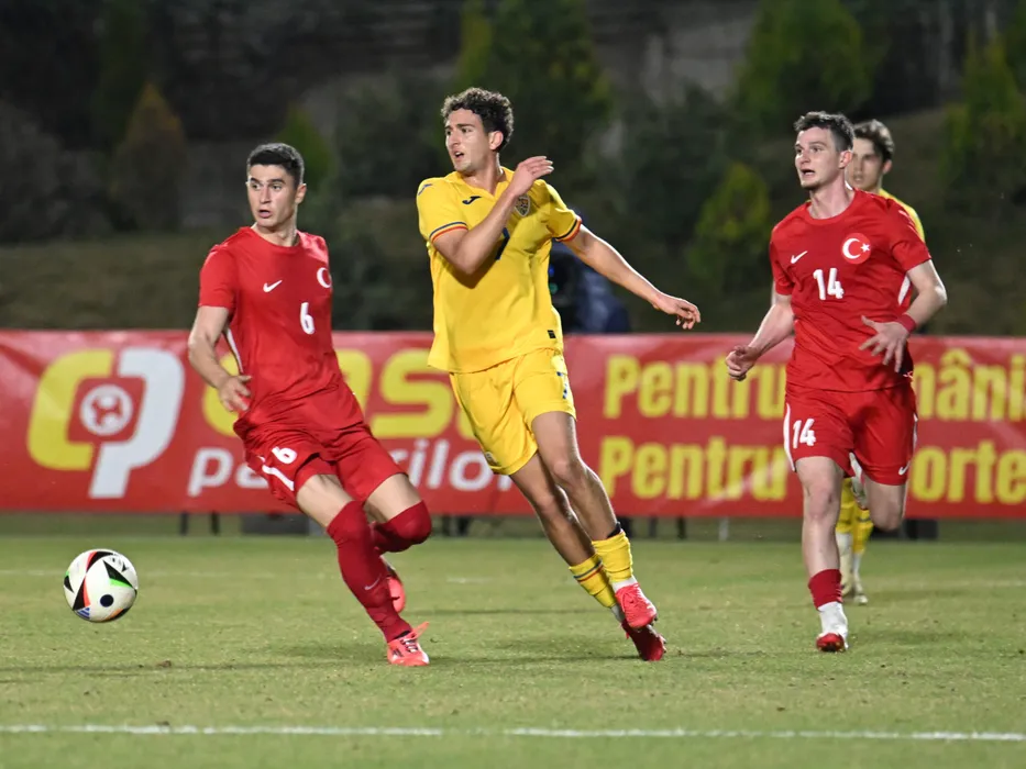 Sertkaya Yusuf, Omar El Sawy si Eren Tunal in meciul de fotbal dintre Romania U20 si Turcia U20, contand pentru Elite League U20, desfasurat pe Stadionul Eugen Popescu din Targoviste, marti 25 martie 2025. © FOTO:Razvan Pasarica/SPORT PICTURES