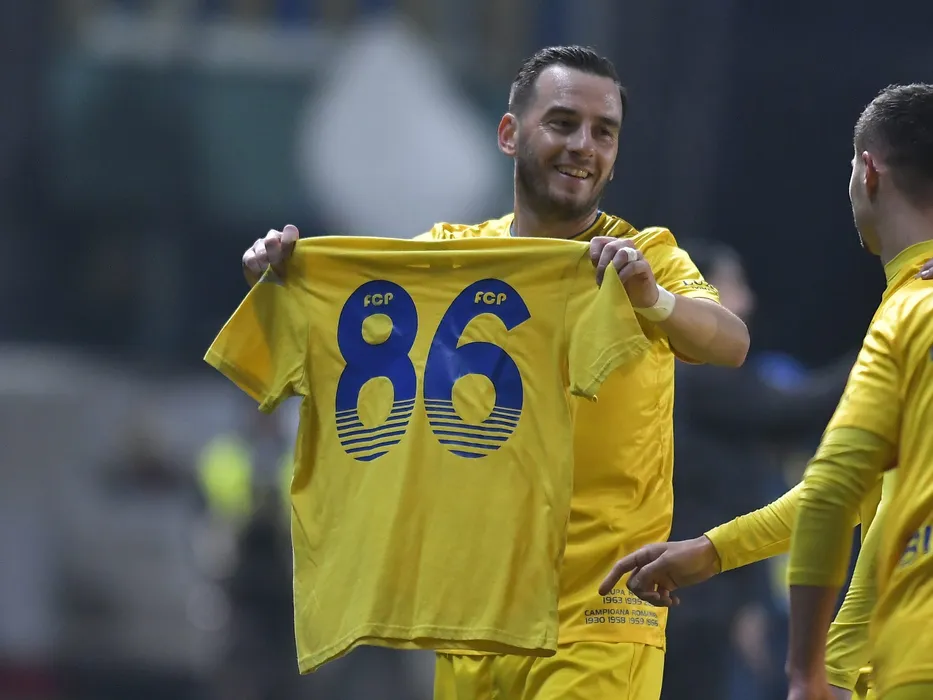 Stefan Nicolae Barboianu se bucura dupa un gol marcat in meciul de fotbal dintre Petrolul Ploiesti si CSM Politehnica Iasi, contand pentru Cupa Romaniei, desfasurat fara spectatori pe Stadionul Ilie Oana din Ploiesti, marti 9 februarie 2021. © FOTO:Razvan Pasarica/SPORT PICTURES