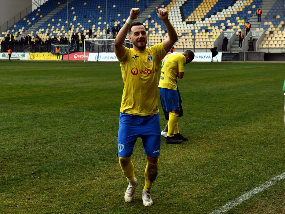Stefan Nicolae Barboianu bucuros dupa meciul de fotbal dintre Petrolul Ploiesti si AFC Dunarea Calarasi, contand pentru Liga a-2-a Casa Pariurilor, disputat pe Stadionul Ilie Oana din Ploiesti, sambata 22 februarie 2019. © FOTO:Razvan Pasarica/SPORT PICTURES