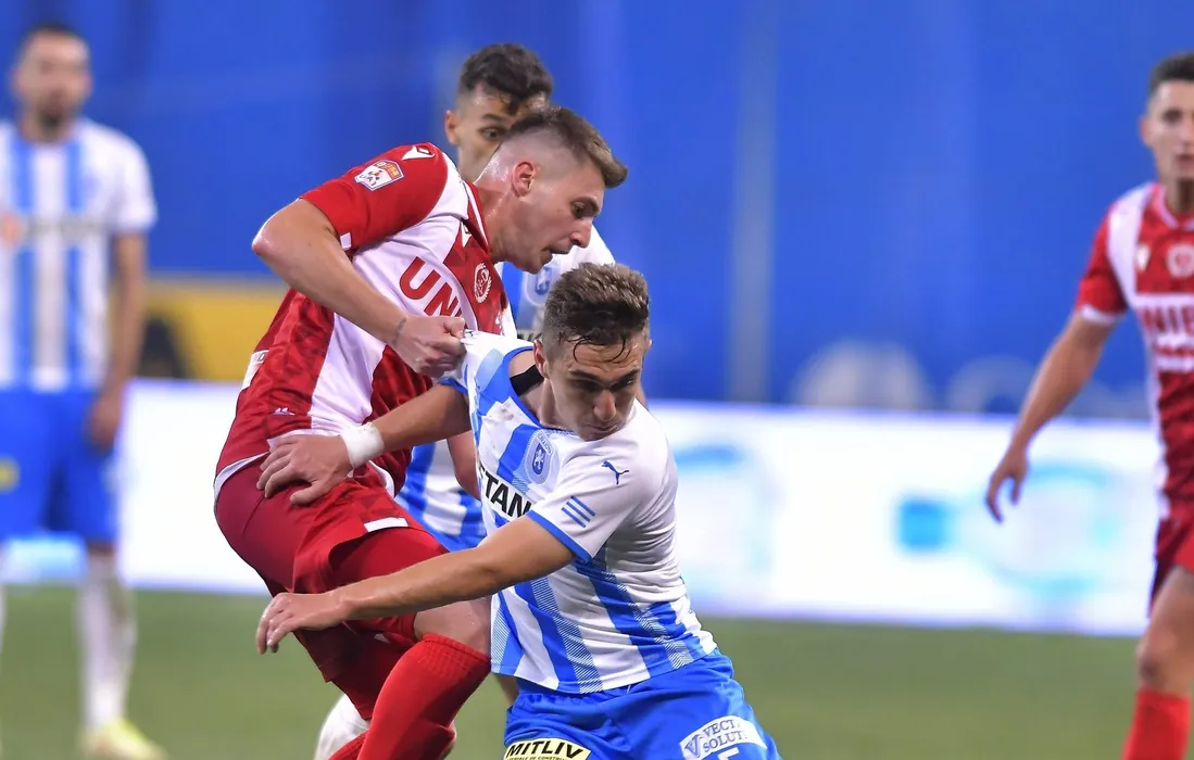 Alin Ilie Dudea si Bogdan Ilie Vatajelu in meciul de fotbal dintre Universitatea Craiova si Dinamo Bucuresti, contand pentru Liga 1 Casa Pariurilor, desfasurat pe Stadionul Ion Oblemenco din Craiova, luni 27 septembrie 2021. © FOTO:Razvan Pasarica/SPORT PICTURES