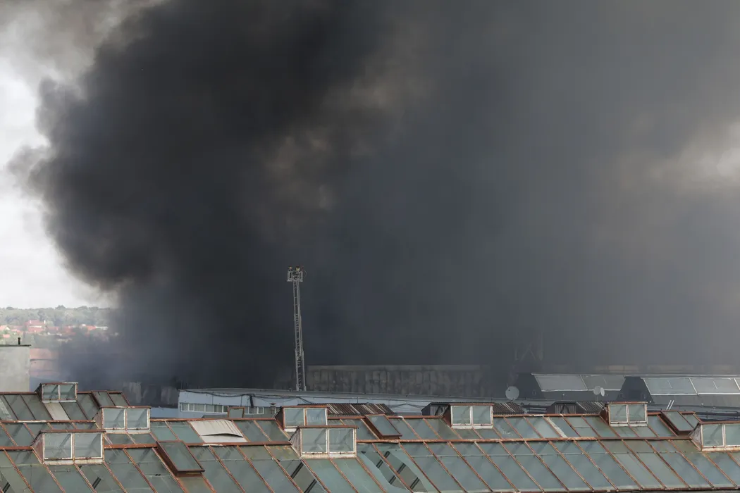 Incendiu puternic în zona de Nord a Capitalei! A ars o hală în întregime. Oamenii au fost evacuați. Fumul negru se vede de la 10 km distanță