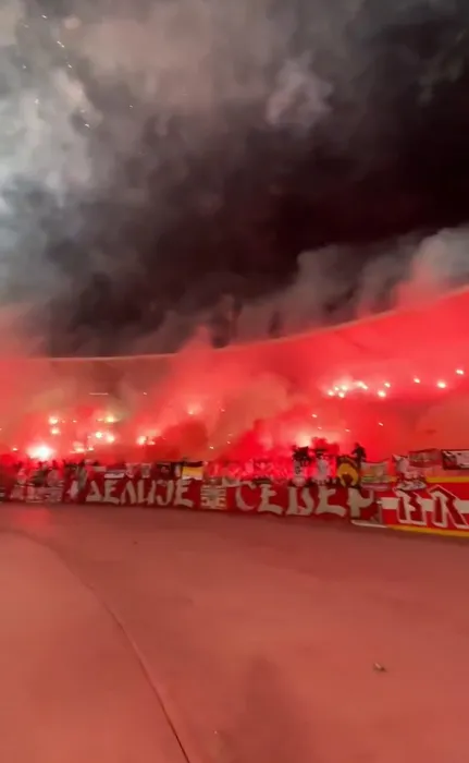 Incendiul de la Steaua – Dinamo, repetat în Serbia! Ultrașii lui Partizan au dat foc peluzei la derby-ul cu Steaua Roșie Belgrad