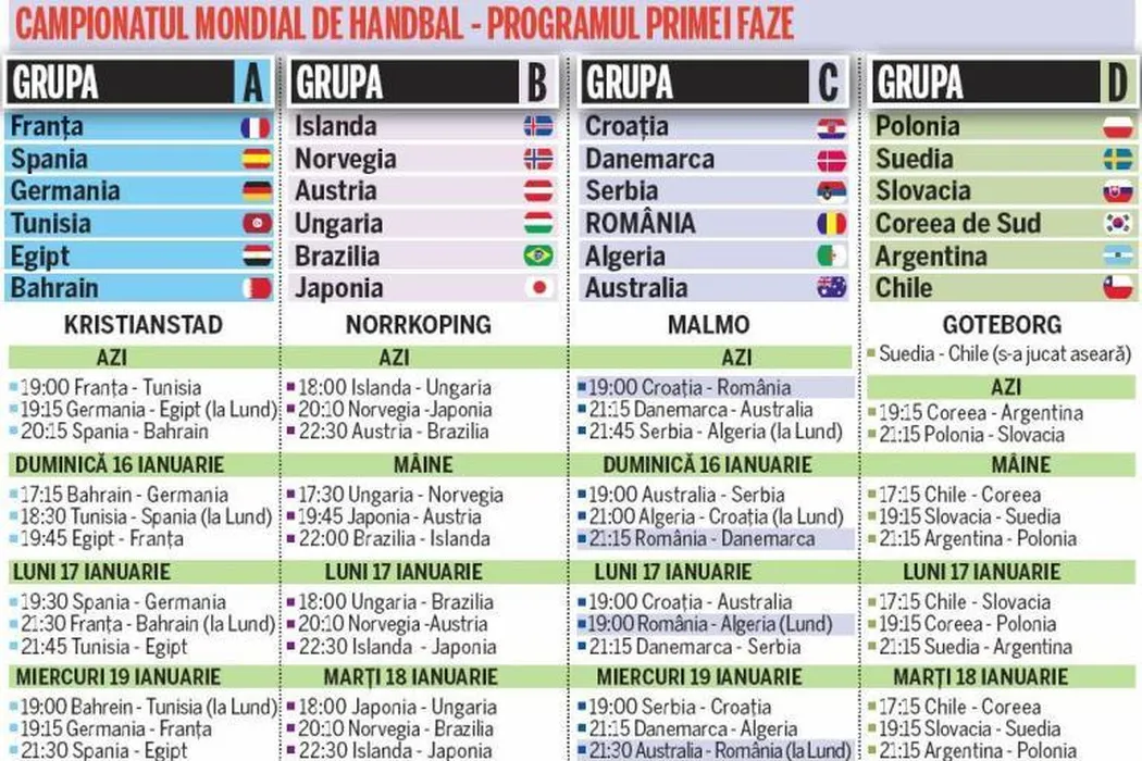 Începe Campionatul Mondial de Handbal!** Vezi programul complet