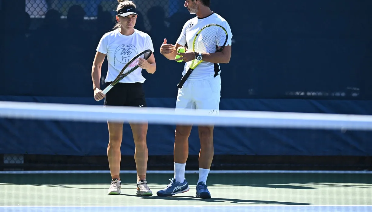 Simona Halep (ROU) and her coach Patrick Mouratoglou (FRA) during practice at the 2022 US Open at Billie Jean National Tennis Center in New York City, NY, USA, on August 27, 2022.,Image: 717120109, License: Rights-managed, Restrictions: , Model Release: no