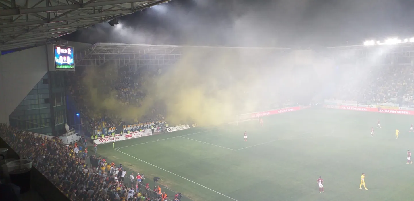 Incidente grave la derby-ul Petrolul – Rapid! Suporterii au dat foc stadionului „Ilie Oană”! Pompierii au intervenit de urgență | FOTO