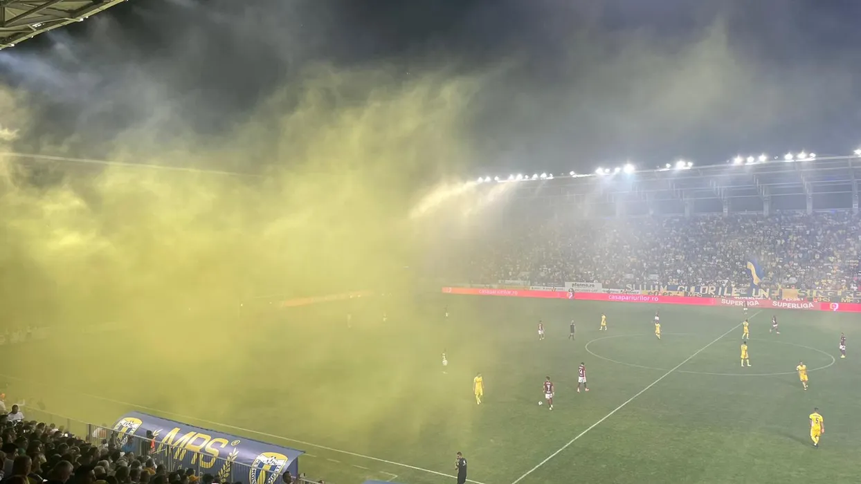 Incidente grave la derby-ul Petrolul – Rapid! Suporterii au dat foc stadionului „Ilie Oană”! Pompierii au intervenit de urgență | FOTO