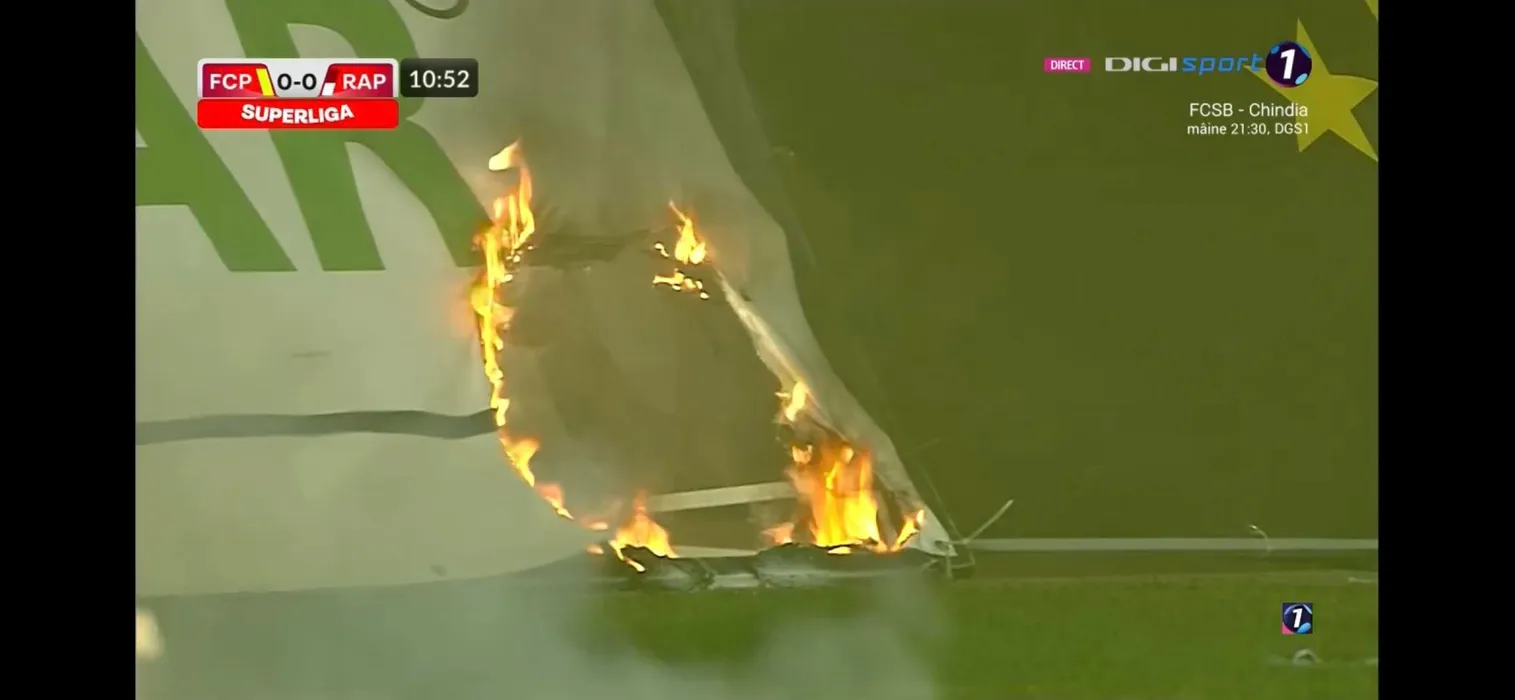 Incidente grave la derby-ul Petrolul – Rapid! Suporterii au dat foc stadionului „Ilie Oană”! Pompierii au intervenit de urgență | FOTO