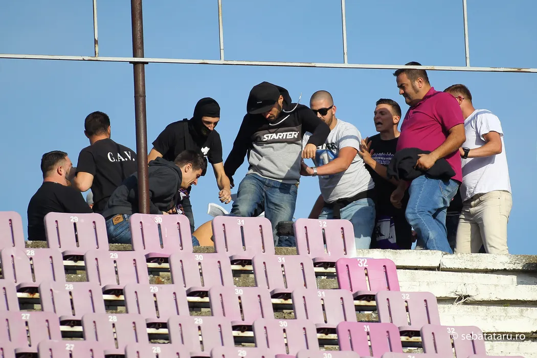Incidente în Derby-ul Vestului! Fanii arădeni au ieșit din peluză și s-au îndreptat spre suporterii bănățeni: un spectator a fost bătut, forțele de ordine au folosit gaze lacrimogene