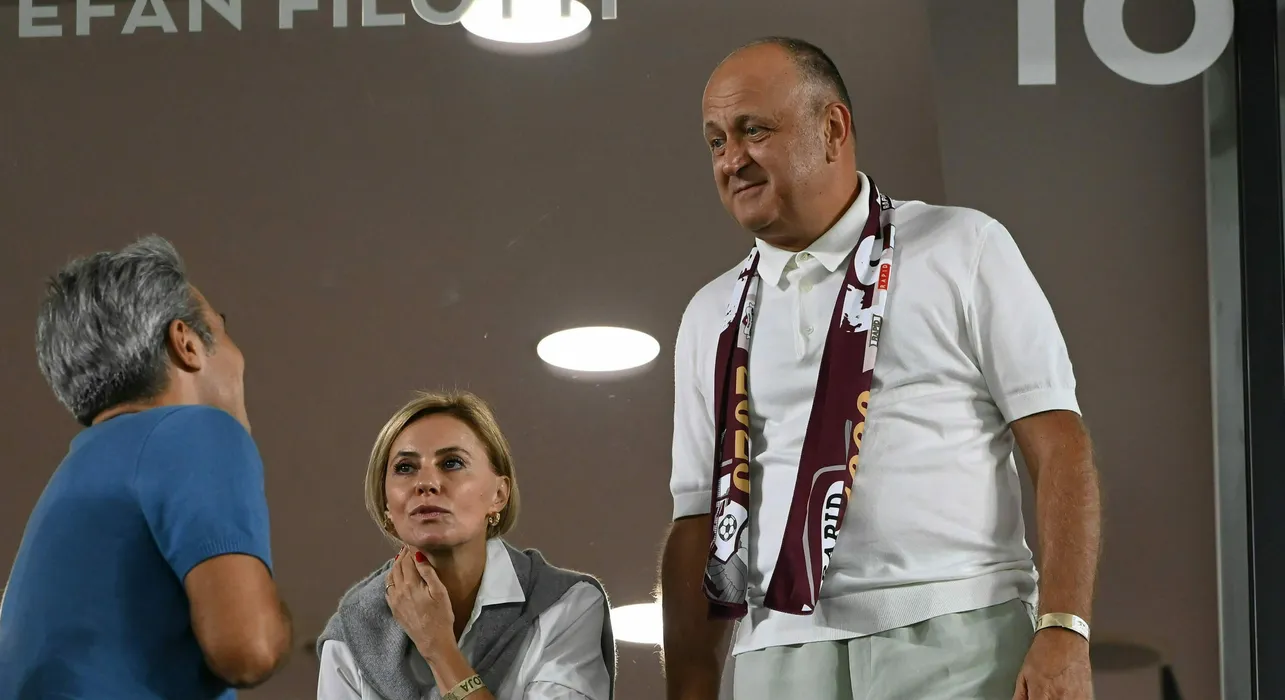 Dan Sucu alaturi de sotie in tribuna la meciul de fotbal dintre Rapid Bucuresti si CFR Cluj, din cadrul Superligii Superbet, desfasurat pe Superbet Arena-Giulesti din Bucuresti, luni 25 septembrie 2023. © FOTO:Razvan Pasarica/SPORT PICTURES