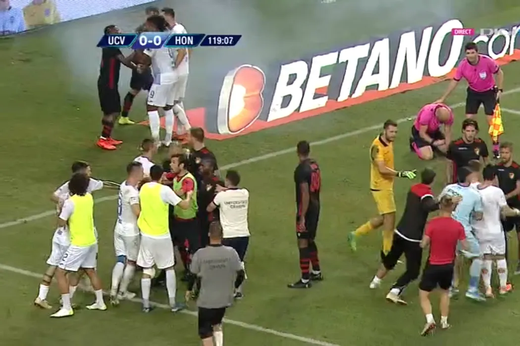 INCREDIBIL! Fanii olteni au scăpat de sub control. O petardă și un obiect l-au doborât pe arbitrul meciului U Craiova – Honved. Ungurii au cerut oprirea meciului