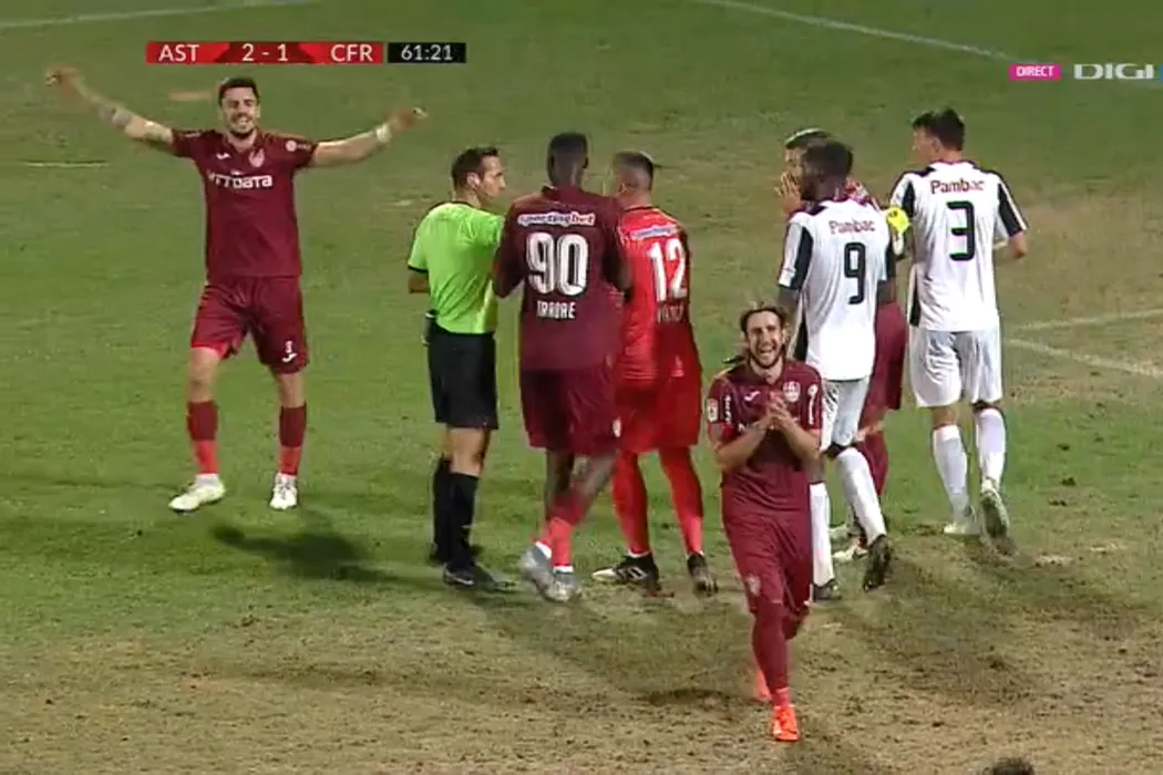 Incredibil! Mario Camora, eliminat după ce a trântit o sticlă cu apă pe teren. Sebastian Colțescu, decizie de neînțeles + Dan Petrescu și Vâtcă au văzut și ei cartonașul roșu