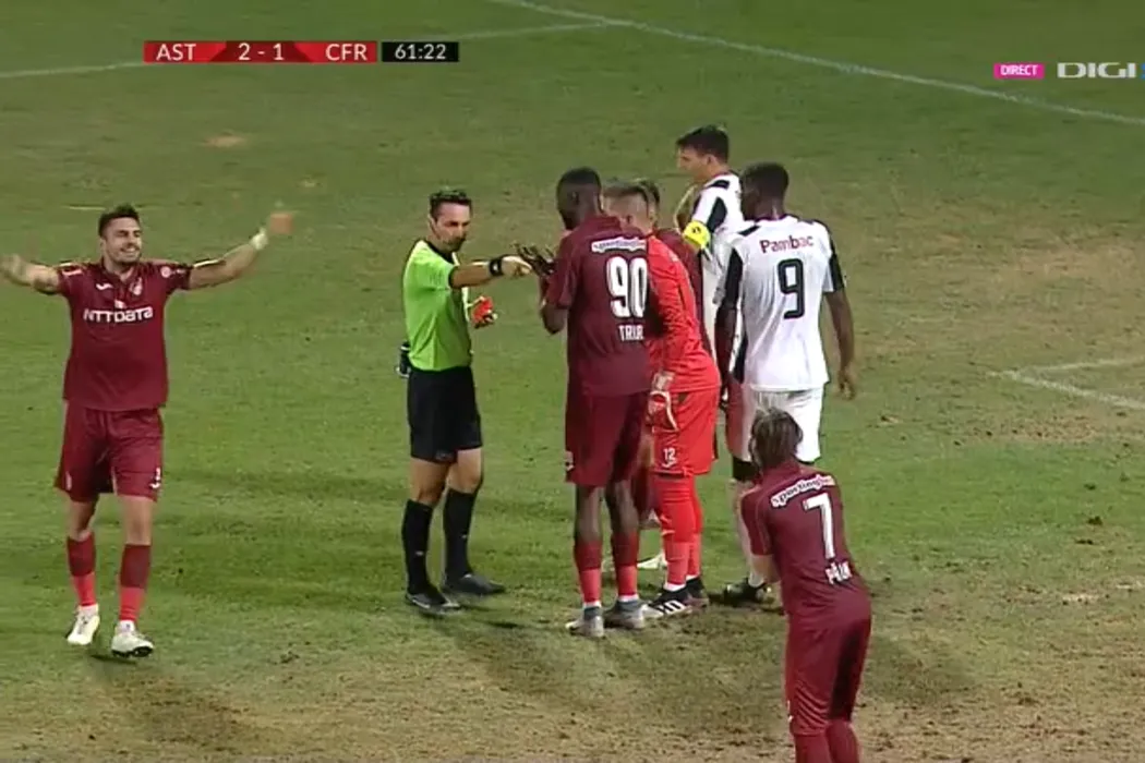 Incredibil! Mario Camora, eliminat după ce a trântit o sticlă cu apă pe teren. Sebastian Colțescu, decizie de neînțeles + Dan Petrescu și Vâtcă au văzut și ei cartonașul roșu