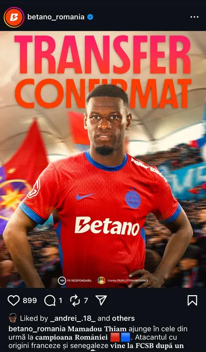 Inedit! Sponsorul Betano a anunțat transferul oficial al lui Thiam la FCSB, deși clubul lui Gigi Becali n-a făcut-o încă