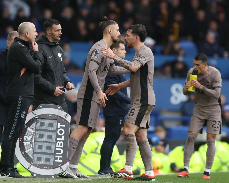 Pierre-Emile Hojbjerg of Tottenham Hotspur is replaced by Radu Dragusin of Tottenham Hotspur