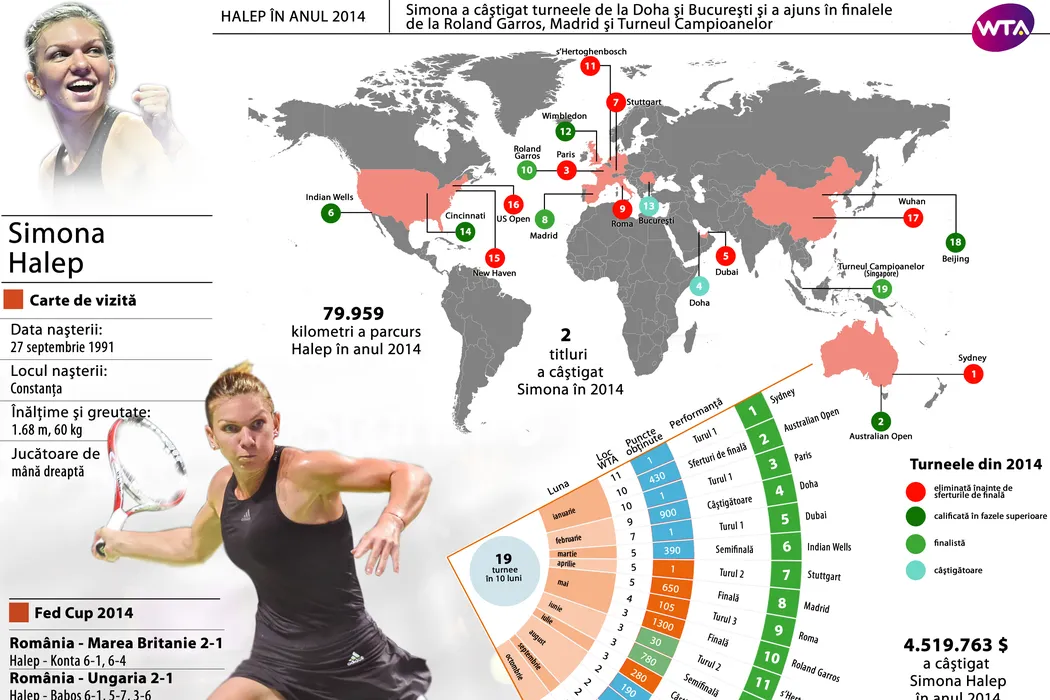 INFOGRAFIE | 2014, anul în care Halep a ajuns în elita tenisului mondial