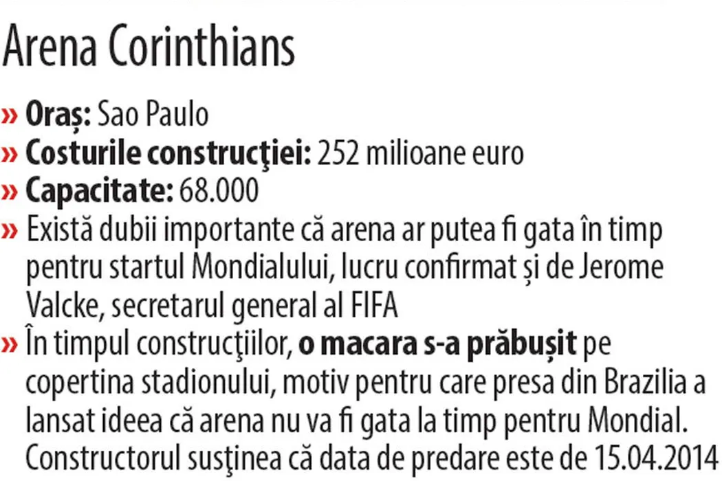 INFOGRAFIE | 3,6 miliarde de dolari pentru 12 stadioane. Cum arată arenele pe care se dispută Campionatul Mondial de fotbal 2014 din Brazilia