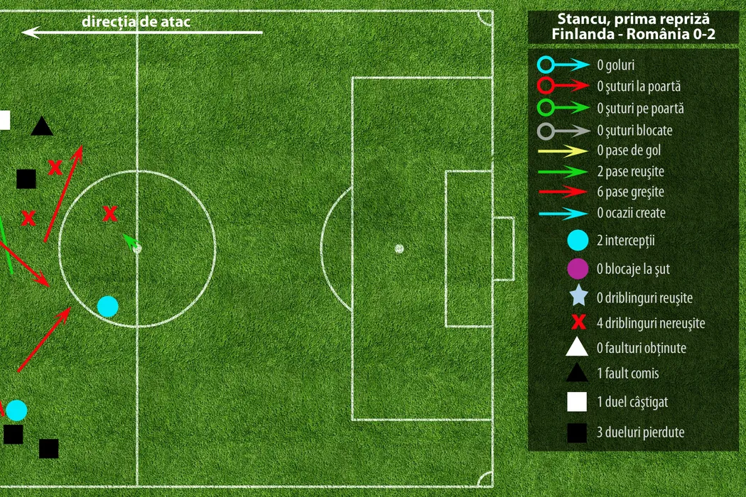 INFOGRAFIE | Stancu a avut două reprize total opuse. Pițurcă a fost inspirat să îl țină pe teren după o primă parte dezastruoasă