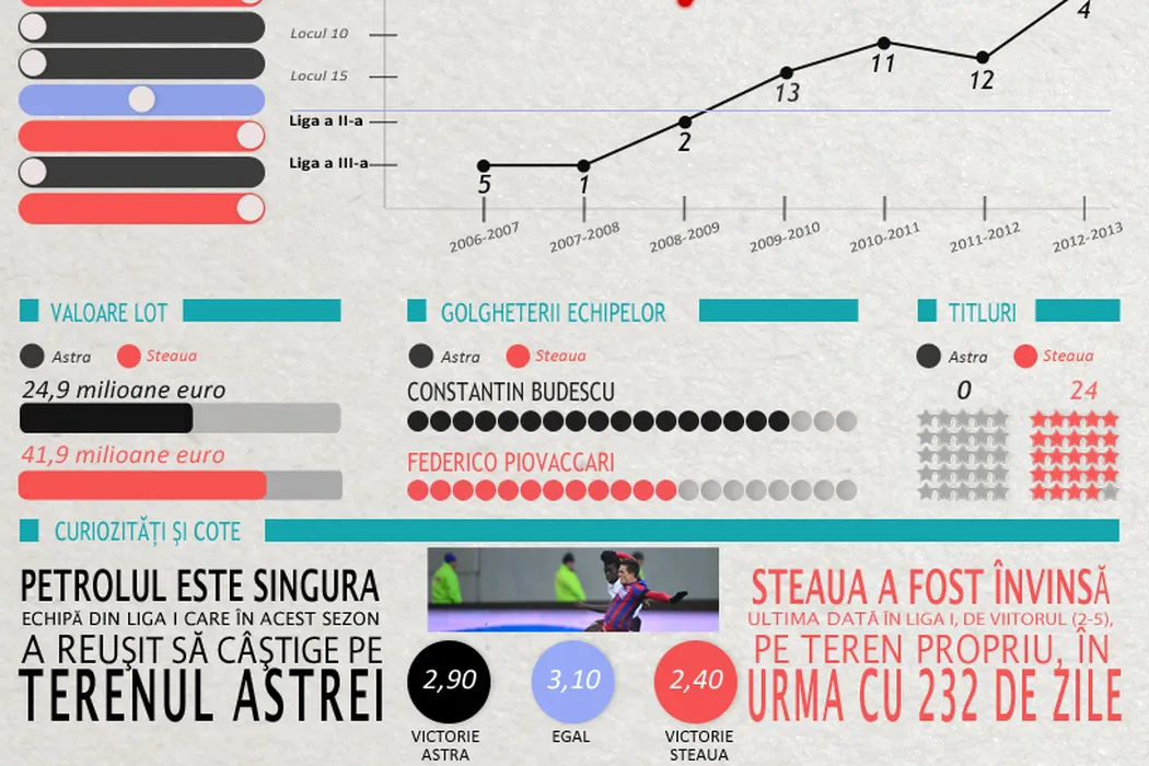 INFOGRAFIE: Un singur egal în ultimele zece meciuri Astra – Steaua. De ce vor avea roș-albaștrii o deplasare foarte grea
