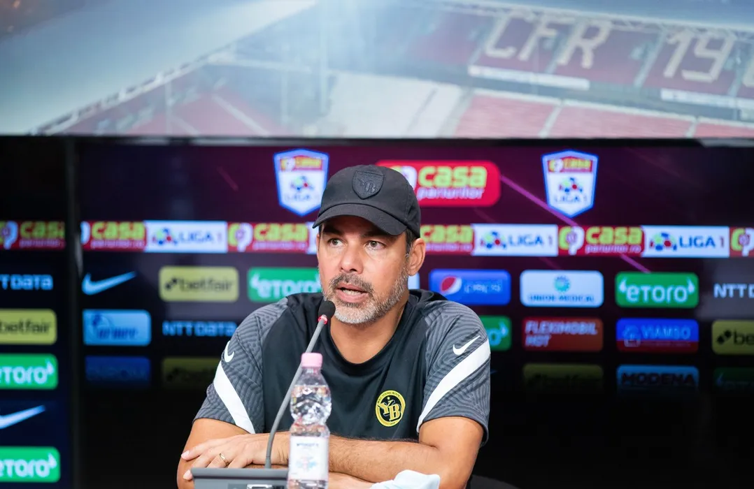BSC Young Boys coach David Wagner speaks during a press conference prior to the UEFA Champions League third qualifying round between CFR Cluj and Young Boys