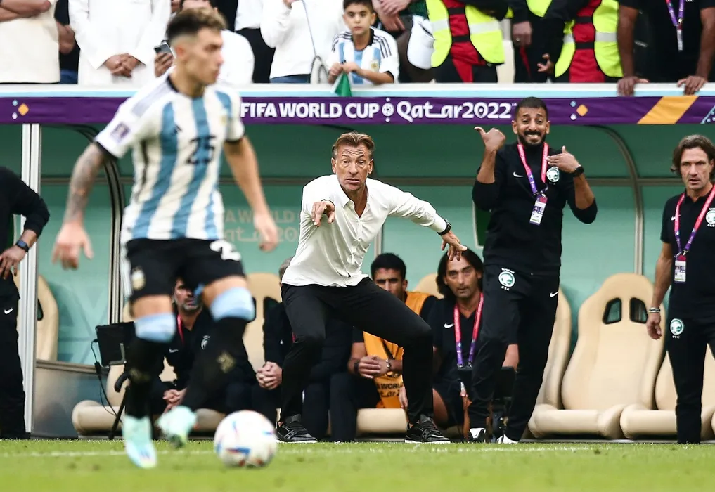 Herve Renard manager of Saudi Arabia (centre) Argentina v Saudi Arabia, FIFA World Cup 2022, Group C, Football, Lusail Stadium, Al Daayen, Qatar - 22 Nov 2022,Image: 739332486, License: Rights-managed, Restrictions: Editorial Use Only, Model Release: no