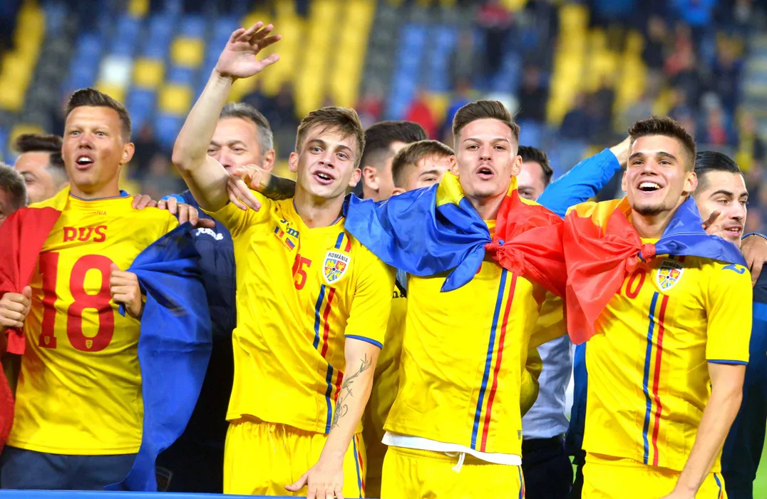 Bucurie a fotbalistilor romani Mihai Butean,Dennis Man si Ianis Hagi dupa meciul de fotbal intre reprezentativele U21 ale Romaniei si Liechtensteinului, din cadrul Preliminariilor CE 2019, desfasurat pe Stadionul Ilie Oana din Ploiesti, marti 16 octombrie 2018. © FOTO Razvan Pasarica/SPORT PICTURES