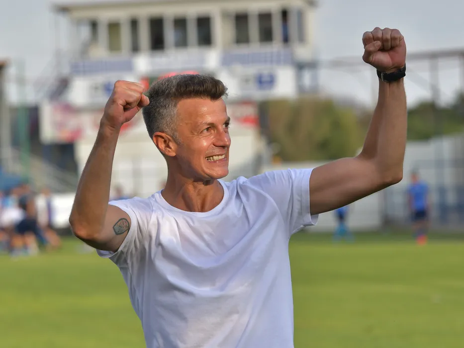 Ovidiu Burca se bucura dupa meciul de fotbal dintre Progresul Spartac si Dinamo Bucuresti, contand pentru Liga 2, desfasurat pe Clinceni Arena din Clinceni 2022. © FOTO:Razvan Pasarica/SPORT PICTURES
