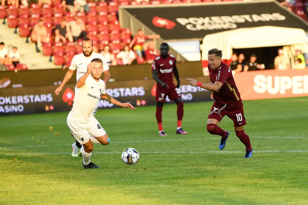 Meciul dintre CFR Cluj si Inter Club d'Escaldes din turul 2 preliminar al Conference League, disputat pe stadionul Constantin Radulescu din Cluj-Napoca, joi, 21 iulie 2022. In imagine: Ciprian Deac (D). FLAVIU BUBOI / MEDIAFAX FOTO