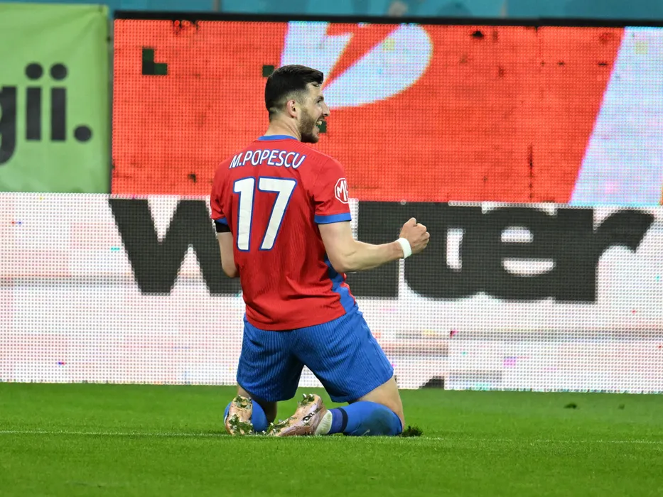 Mihai Popescu se bucură dupa un gol marcat in meciul dintre FCSB si Otelul Galati, contand pentru Play out-ul Superligii Superbet, desfasurat pe Arena Nationala din Bucuresti, sambata 11 aprilie 2026. © FOTO:Razvan Pasarica/SPORT PICTURES