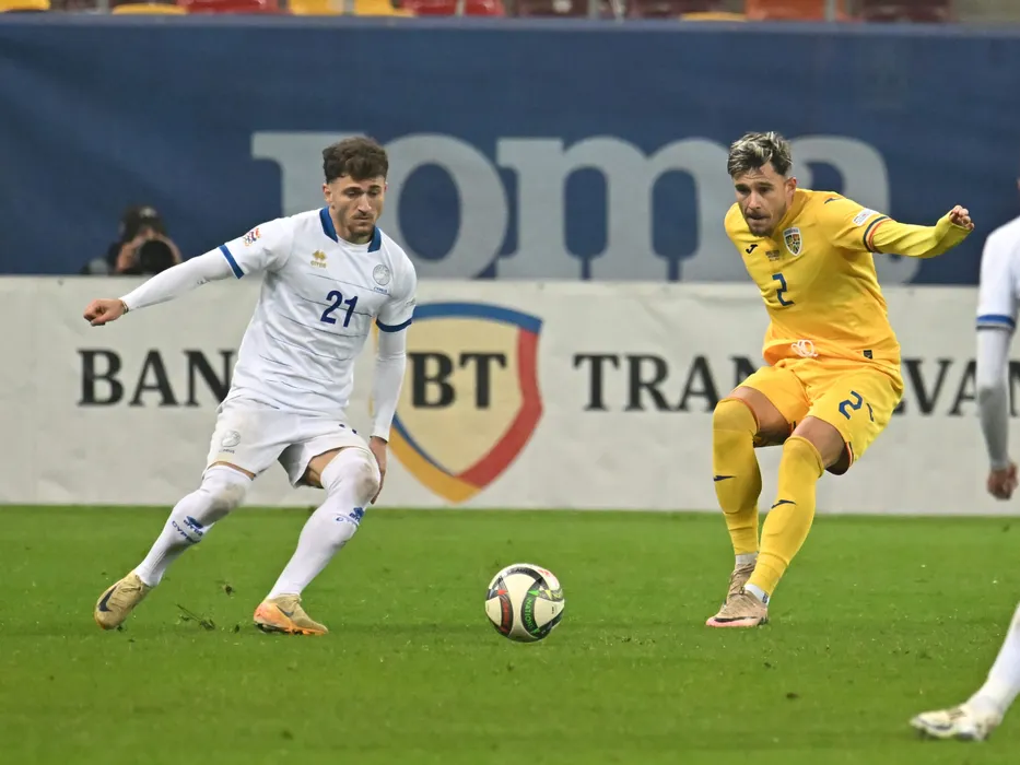Marinos Tzionis si Andrei Rațiu in meciul de fotbal dintre Romania si Cipru, contand pentru Liga Natiunilor, desfasurat pe Arena Nationala din Bucuresti, luni 18 noiembrie 2024. © FOTO:Razvan Pasarica/SPORT PICTURES