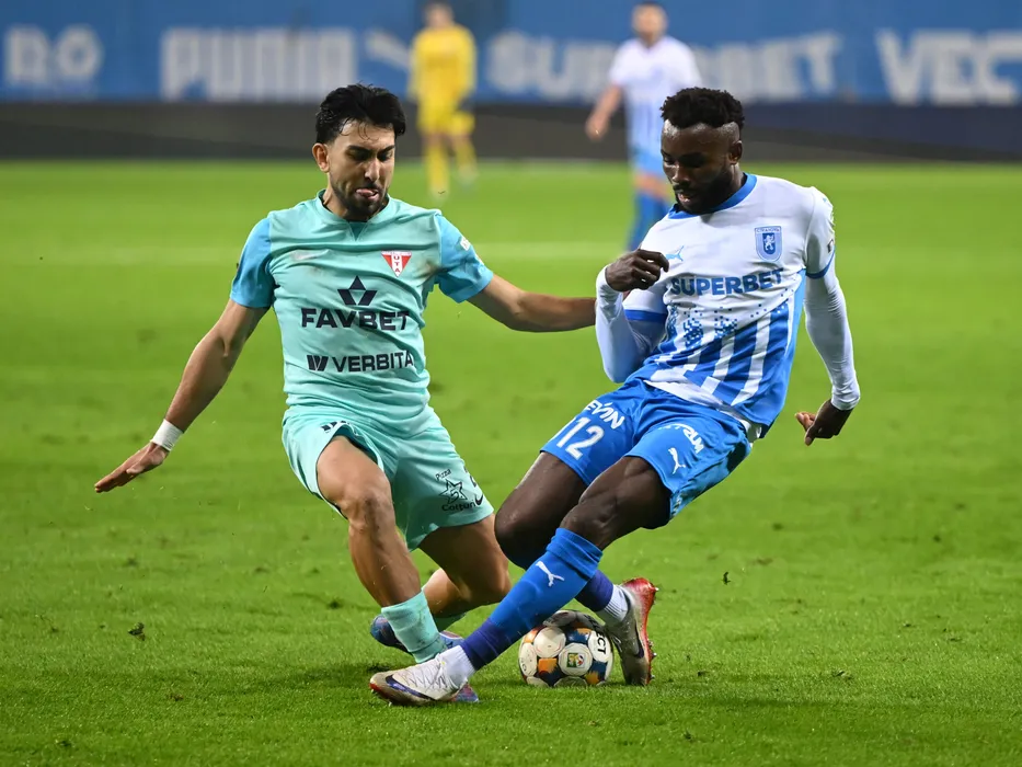 Mark Tutu si Bassey Etim Monday in meciul dintre Universitatea Craiova si UTA Arad, contand pentru Superliga Superbet, desfasurat pe Stadionul Ion Oblemenco din Craiova, duminica 9 noiembrie 2025. © FOTO:Razvan Pasarica/SPORT PICTURES