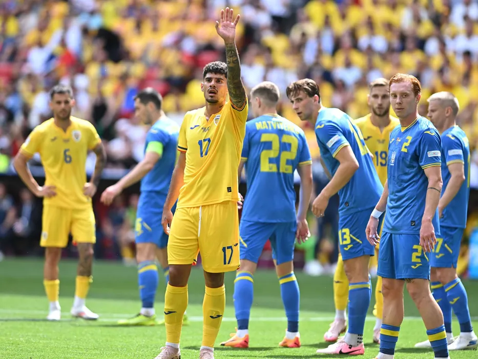 Florinel Coman reactioneaza in meciul dintre Romania si Ucraina, din cadrul UEFA EURO, EM, Europameisterschaft,Fussball 2024, desfasurat pe Fussball Arena din Munchen, luni 17 iunie 2024. Munchen *** Florinel Coman reacts during the UEFA EURO 2024 match between Romania and Ukraine at the Fussball Arena in Munich, Monday 17 June 2024 Munich Copyright: xRazvanxPasarica/SPORTxPICTURESx,Image: 882491429, License: Rights-managed, Restrictions: Credit images as "Profimedia/ IMAGO", Model Release: no
