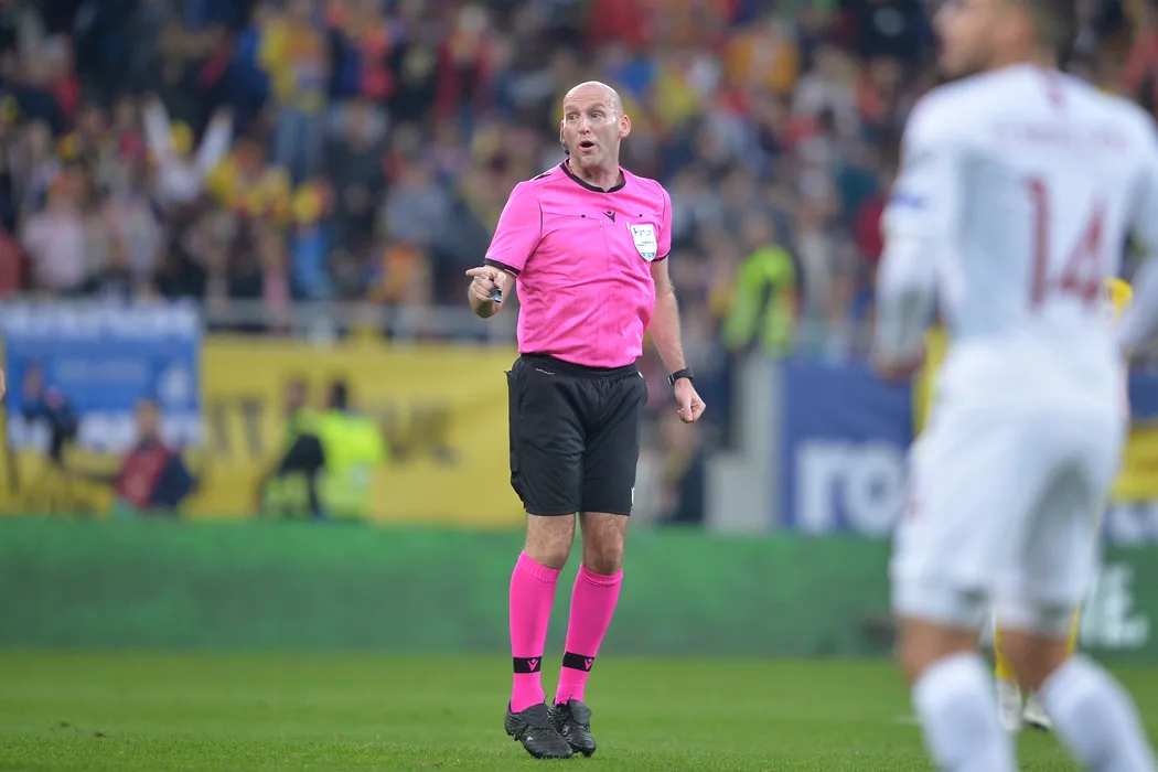 Robert Adam Madden arbitreaza meciul de fotbal dintre Romania si Norvegia, din Grupa F a preliminariilor Euro 2020, disputat pe Arena Nationala din Bucuresti, marti, 15 octombrie 2019. ALEXANDRU DOBRE / MEDIAFAX FOTO