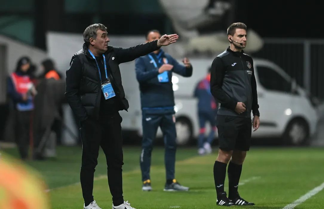 Gheorghe Hagi reactioneaza alaturi de arbitrul de rezerva Rares George Vidican in meciul de fotbal dintre Chindia Targoviste si Farul Constanta, contand pentru Superliga Superbet, desfasurat pe Stadionul Ilie Oana din Ploiesti, sambata 12 noiembrie 2022. © FOTO:Razvan Pasarica/SPORT PICTURES