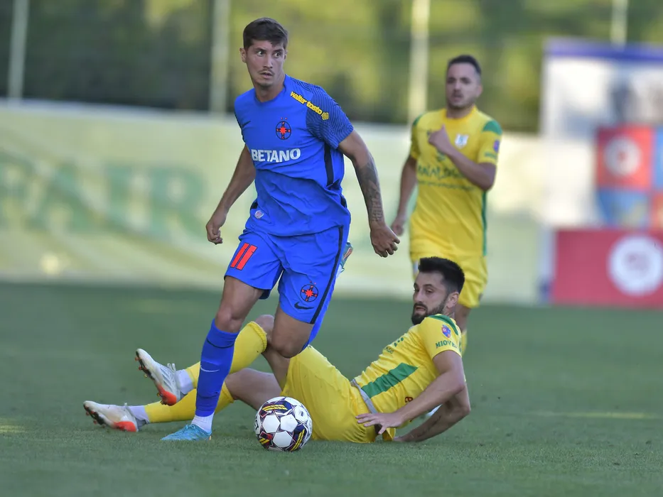 David Raul Miculescu si Ionut Georgian Burnea in meciul de fotbal dintre CS Mioveni si FCSB, contand pentru Superliga Superbet, desfasurat pe Stadionul Orasenesc din Mioveni, sambata 6 august 2022. © FOTO:Razvan Pasarica/SPORT PICTURES