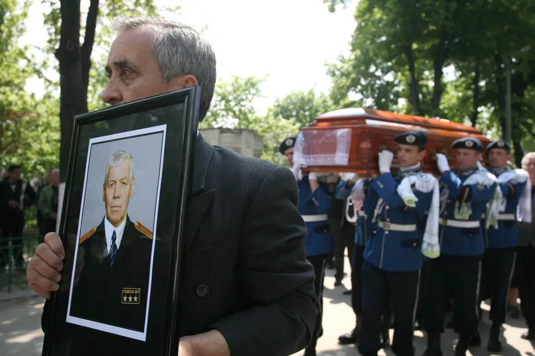 Un barbat merge inaintea cortegiului funerar al fostului international Florea Dumitrache, in Cimitirul Reinvierea, in Bucuresti, sambata, 28 aprilie 2007. CONSTANTIN VLADESCU / MEDIAFAX FOTO
