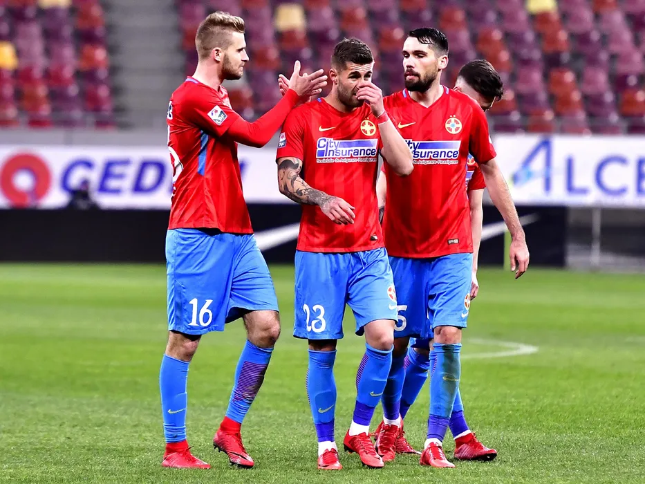 Fotbalistii Stelei Bogdan Planic,Ovidiu Popescu,Valerica Gaman si Dennis Man parasesc terenul dupa meciul de fotbal dintre FC Steaua Bucuresti si CFR Cluj, din cadrul Ligii 1 Betano, desfasurat pe Arena Nationala din Bucuresti, sambata 10 februarie 2018. © FOTO Razvan Pasarica/SPORT PICTURES