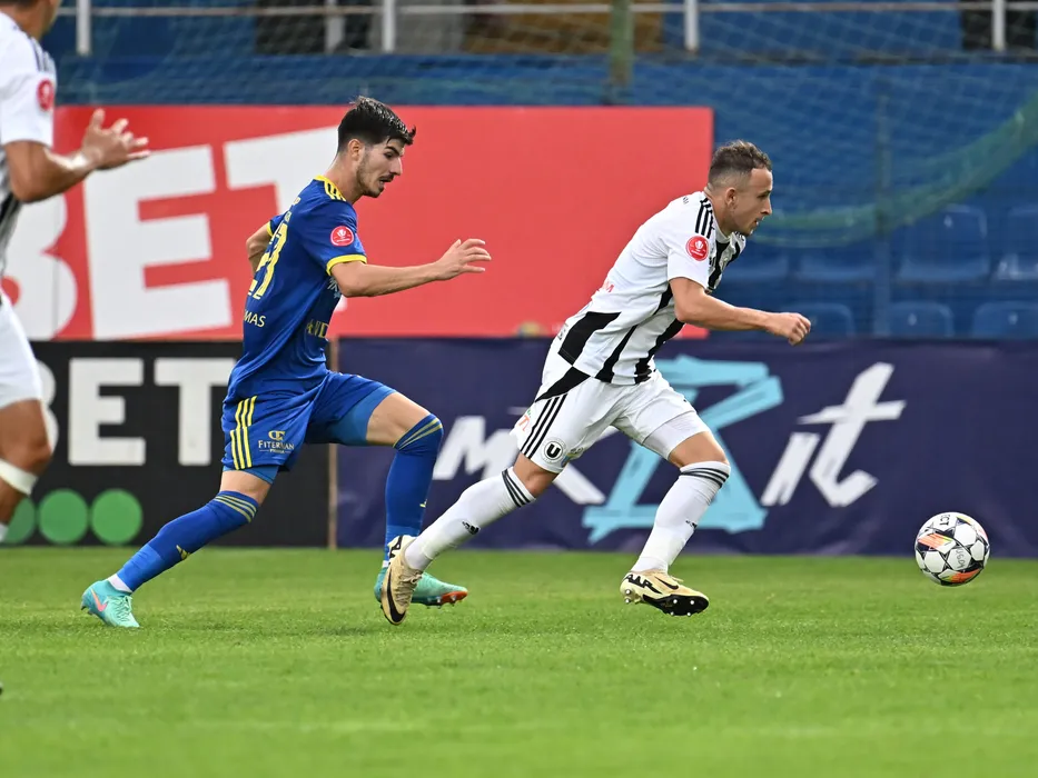 Stefan Cristinel Pacionel si Robert Mihai Silaghi in meciul dintre Unirea Slobozia si Universitatea Cluj, contand pentru Superliga Superbet, desfasurat pe Clinceni Arena din Clinceni, sambata 5 octombrie 2024. © FOTO:Razvan Pasarica/SPORT PICTURES
