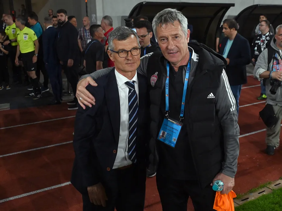 Cristiano Bergodi il consoleaza pe Ovidiu Ioan Sabau dupa meciul de fotbal dintre Sepsi OSK Sfantu Gheorghe si Universitatea Cluj, finala Cupei Romaniei, desfasurat pe Stadionul Municipal din Sibiu, miercuri 24 mai 2023. © FOTO:Razvan Pasarica/SPORT PICTURES