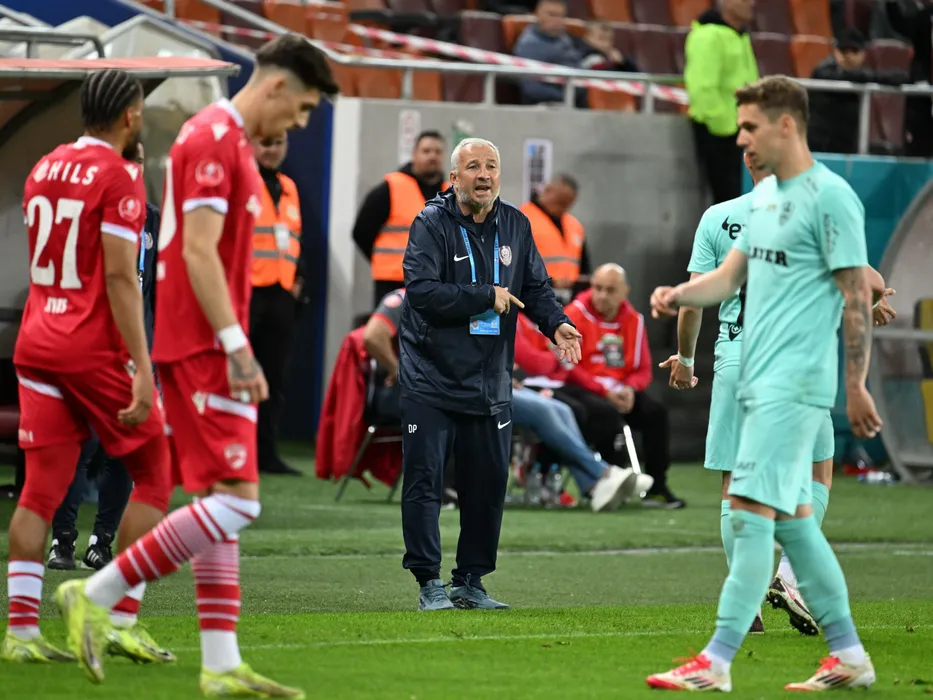 Dan Vasile Petrescu reacționează in meciul de fotbal dintre Dinamo Bucuresti si CFR Cluj, contand pentru Play off-ul Superligii Superbet, desfasurat pe Arena Nationala din Bucuresti, luni 28 aprilie 2025. © FOTO:Razvan Pasarica/SPORT PICTURES